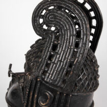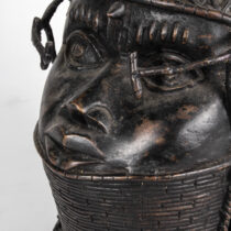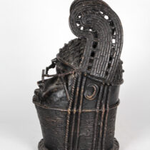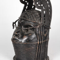 The art of Benin is the product of an urban royal court, and is meant to symbolize and to extol the power, mystique, grandeur, continuity, and endurance of the ruling dynasty and its governing institutions. From the 14th century until its fall in 1897, Benin was ruled by the Oba, a divine ruler at the head of the political system of titled chiefs. Under royal support, a number of craftsman’s guilds produced bronze, brass, and wood sculptures and embroidered cloth, all of which have become prized by museums and collectors.