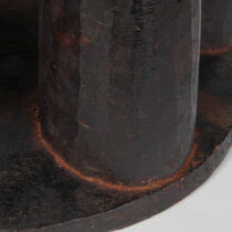 Headrests are used by both Somali men and women while resting or sleeping. It is popularly believed that the headrest serves a protective function by elevating the head off the ground during sleep, thereby preventing any possible attack by snakes or scorpions. Men’s headrests, such as this one, generally feature a smaller base that makes them somewhat unstable to sleep on, while the rectangular bases of women’s headrests are usually more stable. Scholars suggest that this instability is purposeful as it prevents the user from falling into a deep sleep while guarding the herds at night. It is in this sense that the headrest itself has become a symbol of vigilance among Somali nomads. Headrests also play an important role in the nuptial ceremonies of Somali nomads. On his wedding night, the groom places the tubash (a sum of money) under the bride’s headrest. The morning after the marriage is consummated, the bride will use this money to purchase an amber necklace, the symbol of her new status.