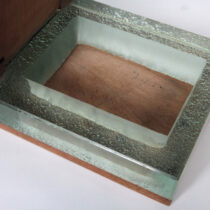 Mahogany with ebony peg details and 1 ¼ inch thick Saint-Gobain glass.