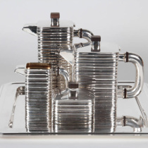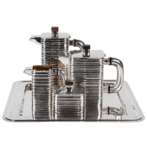 American Art Deco Sterling Coffee and Tea Set on Modernist tray c. 1935