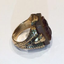 American Egyptian Revival “Cameo” ring, rose gold set with a carved agate Cameo of a Roman soldier, c. 1920’s