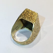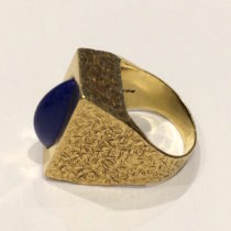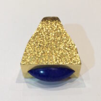 Andrew Grima, “Egyptian” textured 18K gold and elongated cabochon lapis lazuli ring, signed and British date marks for 1972