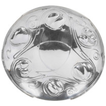 Pewter with floral entrelac in bas-relief and Powell green glass insert