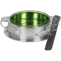 Pewter w/ abstract Celtic leaf design in bas-relief on looping tri-footed base