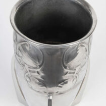 Pewter w/ abstract Celtic leaf design in bas-relief on looping tri-footed base