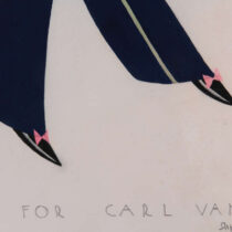 Carl van Vechten (1880-1964), to whom this artwork is dedicated, was an influential novelist, critic, and photographer in New York during the 1920s, 30s, and 40s. His role in the Harlem Renaissance is well-documented. Van Vechten also introduced Miguel Covarrubias, a caricaturist and contemporary of Sogata, to prominent Manhattan artistic and society circles.