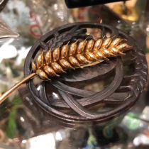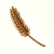 Barrey, Paris, Art Deco “Wheat” clip brooch in 18k gold with fine details of a sheath of wheat, marked, c. 1938