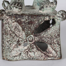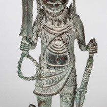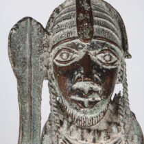 The art of Benin is the product of an urban royal court, and is meant to symbolize and to extol the power, mystique, grandeur, continuity, and endurance of the ruling dynasty and its governing institutions. From the 14th century until its fall in 1897, Benin was ruled by the Oba, a divine ruler at the head of the political system of titled chiefs. Under royal support, a number of craftsman’s guilds produced bronze, brass, and wood sculptures and embroidered cloth, all of which have become prized by museums and collectors.