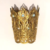 Boucheron (attr.) large and impressive “Peacock Feather” cuff/bracelet in 18k gold and set with numerous heart shaped cabochon opals as the eyes of the peacock feathers, marked, c.1895