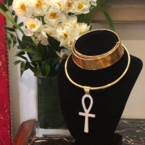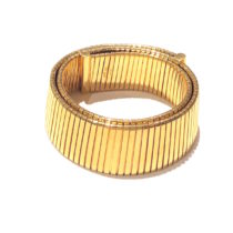 Bulgari, Carlo Luca della Quercia Illario Large flattened “Tubogas” necklace or double bracelet all in 18K gold, signed, original blue leather and suede signed presentation box, c.1970’s