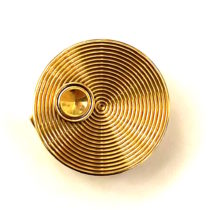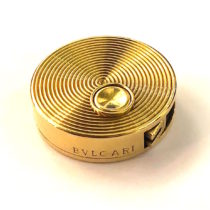 Bulgari, Rome, “Pocket Tape Measure” lighter, 18k gold with a concentric ring detail on both the top and the underside, signed, original signed blue leather box with a tan suede interior, c. 1970’s