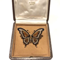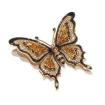 Bulgari, Rome “Swallowtail Butterfly” brooch, 18k gold with 134 diamonds (approx. 10+ carats TW), 37 buff-cut gold and madeira citrines and buff-cut black onyx set along the edge and as accent details, signed, c.1940’s