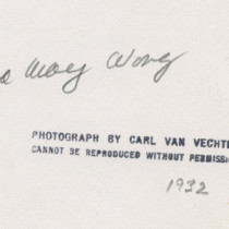 Signed: Anna May Wong 1932 (in pencil on back); PHOTOGRAPH BY CARL VAN VECHTEN CANNOT BE REPRODUCED WITHOUT PERMISSION (ink stamp on back)