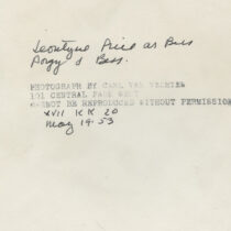 Signed: PHOTOGRAPH BY CARL VAN VECHTEN, 101 CENTRAL PARK WEST, CANNOT BE REPRODUCED WITHOUT PERMISSION (ink stamp on back); VII . CC . 12 (in ink on back)