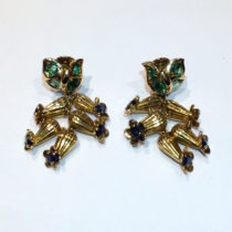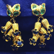 Cartier Paris, “Bluebell” earrings, 18K yellow gold set with emeralds and sapphires, signed c. 1950’s