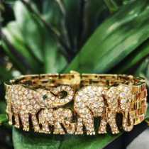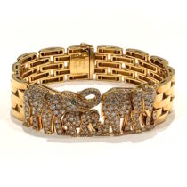 Cartier, Paris “Elephant” Maillon Panthere bracelet in 18k gold and set with 200 round cut diamonds and three round cut emeralds for the eyes, signed, c.1980’s