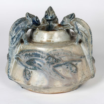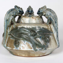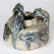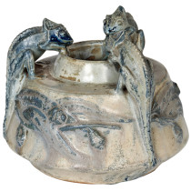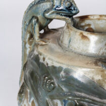 The potter-sculptor has awakened Darwin’s theory of evolution with this vase and has furthermore humanized these reptiles with an amusing sense of cameraderie.