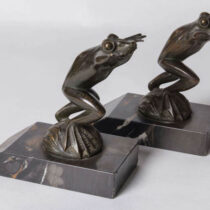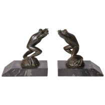 Charles-Maurice Favre-Bertin / French Art Nouveau Bronze frog bookends c. 1925