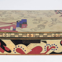 With his recent paintings, Liddy has both reasserted the construct of hyperrealist painting and developed a thoroughly unique advancement of that mode by extending the cultural reality of the indexed original. Based on the illustrated box lids of vintage board games, Liddy has recontextualized a subject, which evokes the underlying rules of life. Painted on copper or steel in the precise dimensions of the original, the metal is then manipulated to demonstrate the exact rips and tears from years of usage and includes trompe-l’oeil renditions of the scotch tape that might be holding the cardboard box together, the assorted stains, or the various graffiti of time. Liddy leaves no possibility of ambivalence, these works speak to a concurrent understanding of their original object identity and to themselves as works of art engaged in historical and psychological dialogue.