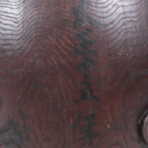 Hand carved and decorated wood with a rich developed brown black patina.