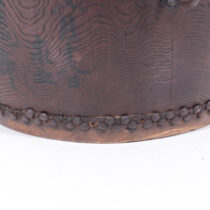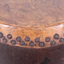 Exotic wood with vellum drum top and button, decorative iron ring