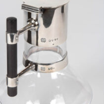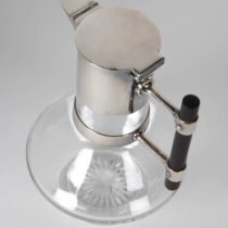 Sterling silver mounts with hinged covers to both top and spout, glass, ebony handle