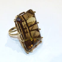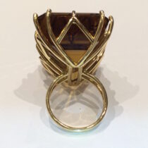 “Cognac” emerald cut large citrine (approx. 100 carats) ring set in an 18K yellow gold zigzag mounting, c. 1940’s