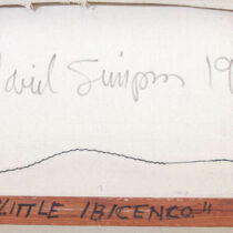 Marks: David Simpson (script signature) on back of canvas, 1979, #14/79 “Little Ibicenco”, two arrows
