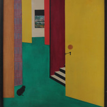 Dorothy Reno Grover, “California Interior with black cat”, Oil on canvas c. 1950’s