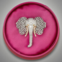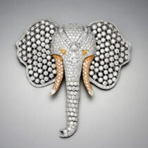 “Elephant” Brooch, Platinum, 18K gold and diamonds (25+ carats)