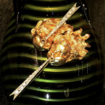 Enrico Serafini, Pair of “Water Sprites”, 18K Yellow and White gold set with 22 round diamonds, signed, c. 1950’s