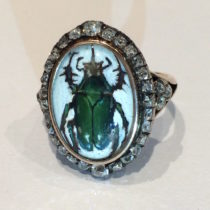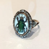 Georgian diamond and crystal “Scarab” ring set in gold with a Contemporary miniature painting by Dina Brodsky, c. 1890