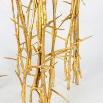 Terrible Chair is a victory; it defines what it means to be an artist in Oka Doner’s conception of that role. It is equally a victory for the thorns because the utility promised by the chair they form remains unavailable to sitters: the thorned sticks are available only as art but not for use. The radical unusability of the work constitutes a draw in the match with nature, and the bronze in which it is cast forms a suitable monument to that context. Terrible Chair enshrines an objective contradiction.