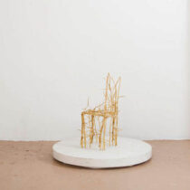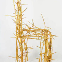 Terrible Chair is made of thorned branches, which have a certain menacing beauty but no real use unless to fashion a mocking crown. Oka Doner is drawn to natural objects; they are her models and her motifs, the source of her metaphors. She saw a thorny branch that she found on a neighbor’s property a clear challenge: “The way the thorns were arranged was exquisite,” she recalled. But those same thorns were too threatening to invite physical approach. A thorned plant has an evolutionary advantage because it refuses to yield to human use. This was an irresistible dare to an artist bent on turning the natural into the meaningful.