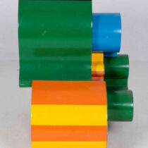 Guy de Rougemont is a French painter and sculptor and is famous for his use of vibrant geometric motifs. His works are a perfect blend of pop art and minimalism. In 1990, the Musée des Arts Décoratifs in Paris (Museum of Decorative Arts) presented an important retrospective about this major contemporary French artist, member of the prestigious French Académie des Beaux-Arts. ROUGEMONT, Espaces publics et Arts décoratifs, 1965-1990, Musée des Arts décoratifs, Paris, 5/22/1990 – 08/19/1990