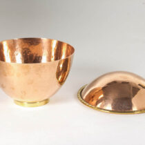 Hayno Focken (1905-1968) was an eminent German metal artist. He completed his training under Professor Karl Müller (1888-1972) at the design and arts school on Giebichenstein Castle in Halle (Saale), which was strongly tied to the ideals of the Deutsche Werkbund and the Bauhaus. In 1932 he established his own workshop in Lahr/Schwarzwald and continued his work until shortly before his death. His artistic work always stood out with a strong preference for large, organic forms, a similar manner of surface design and the same adherence to the principle of handicraft. Even his artist signet was modelled on the simple, square castle mark. In the 1950s he became one of those significant artists who had a major impact on contemporary metal design. The foundation of his creative work was a masterful understanding of proportions.