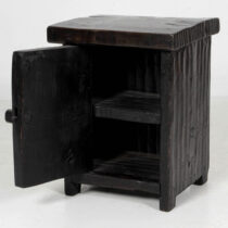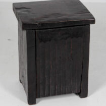Solid hardwood or ebony with an adzed surface, interior shelf.