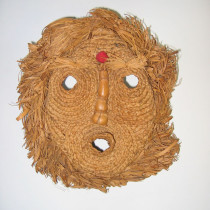Iroquois Corn Husk Mask, woven corn husk, corn cob nose, red cloth medicine bag c. 1900