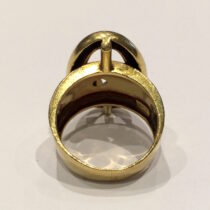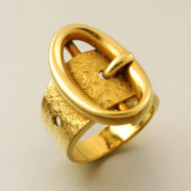 Italian Retro oval “Buckle” ring, 18K gold with a Florentine finish, marked, c. 1940’s