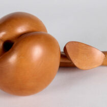 Hand carved and formed jelutong wood in a symbolic / erotic form of a peach
