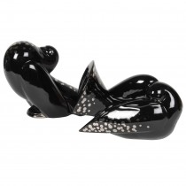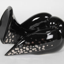 Black glazed earthenware with silver / platinum decorative dot motif.
