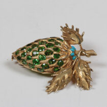 Jean Schlumberger for Tiffany & Co. “Berry brooch” 18K yellow gold, demantoids and cabochon turquoise, signed, c. 1968