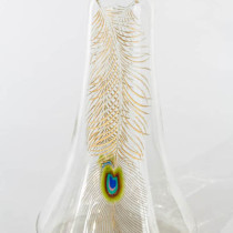 Clear crystal engraved with a peacock feather (gilding)and inset with an applied colored-glass peacock eye