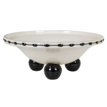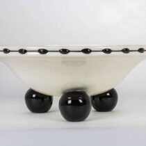 Black and white glazed earthenware with three ball feet