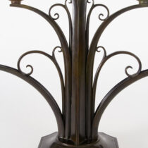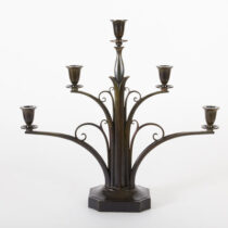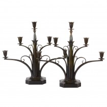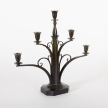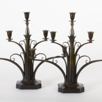 Just Andersen was a designer and craftsman for Georg Jensen until 1918 when he left to open his own studio. These candelabra are exquisite and remarkable examples of Danish Art Deco design and a testament to the artist’s consummate craftsmanship. Andersen’s bronzes are characterized by rich, deep patination and superlative casting quality and surfaces.
