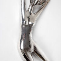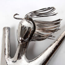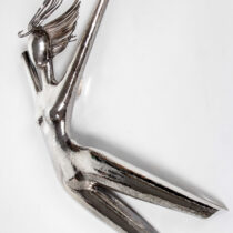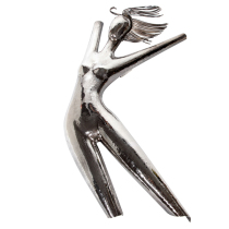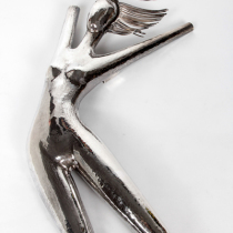 Handwrought sterling silver repoussé in the form of a nude with blowing hair