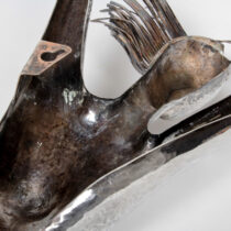 Hand wrought and textured copper, silver-plated.