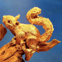 Kurt Wayne (born in Vienna, 1909-1990, New York) statement “Squirrel” ring in highly textured 18k gold and set with ruby eyes, signed, 1969