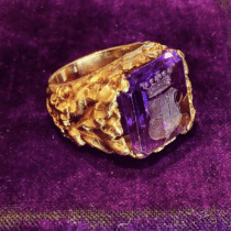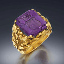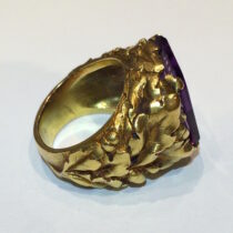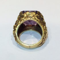 Leo-Victor Gardey (1879-1942) “Oak Leaves” ring, carved 18K gold set with a Heraldic amethyst jewel (approx. 14 carats TW), signed, c. 1900