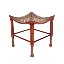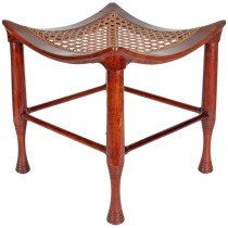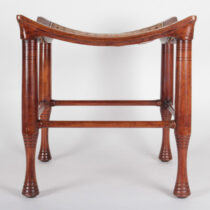 One of the driving influences of the Aesthetic Movement of the late 19th century was an informed interest in authentic ancient designs inspired by recent archaeological discoveries. Both the three- and four-legged Thebes stool were inspired by actual furniture and wall paintings unearthed from royal tombs in the ancient Egyptian city for which they are named. Leonard Wyburd, who was one of the principal designers for Liberty, patented his designs for the Thebes stools in 1884. Liberty & Co. continued to make the popular stools into the early 1900’s.